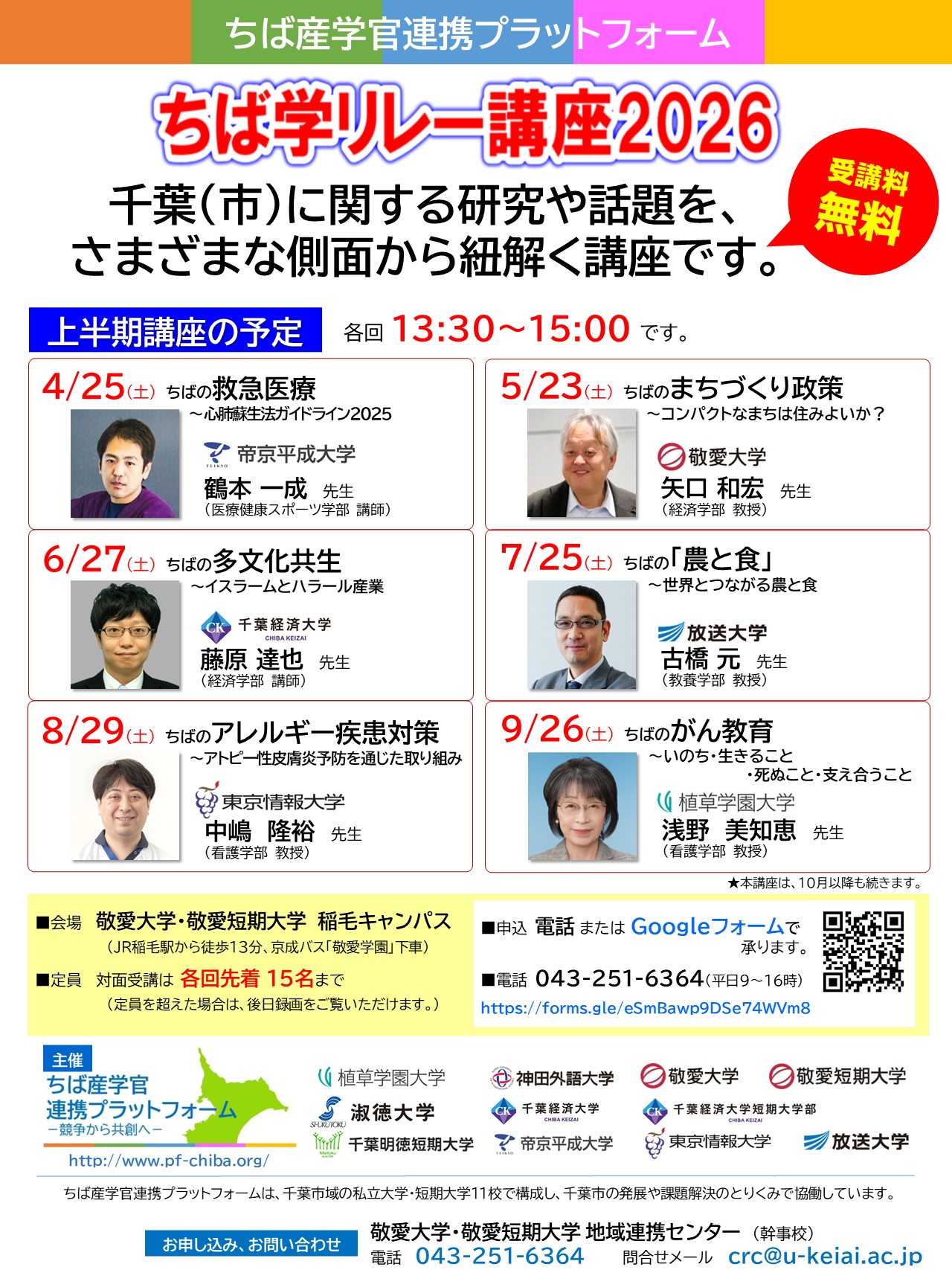敬愛大学、敬愛短期大学(千葉市稲毛区)など「ちば産学官連携プラットフォーム」の参加大学・短期大学11校は、2026年度も共同で「ちば学リレー講座」を開講します。おかげさまで「ちば学リレー講座」は、開講から8年目を迎えました。