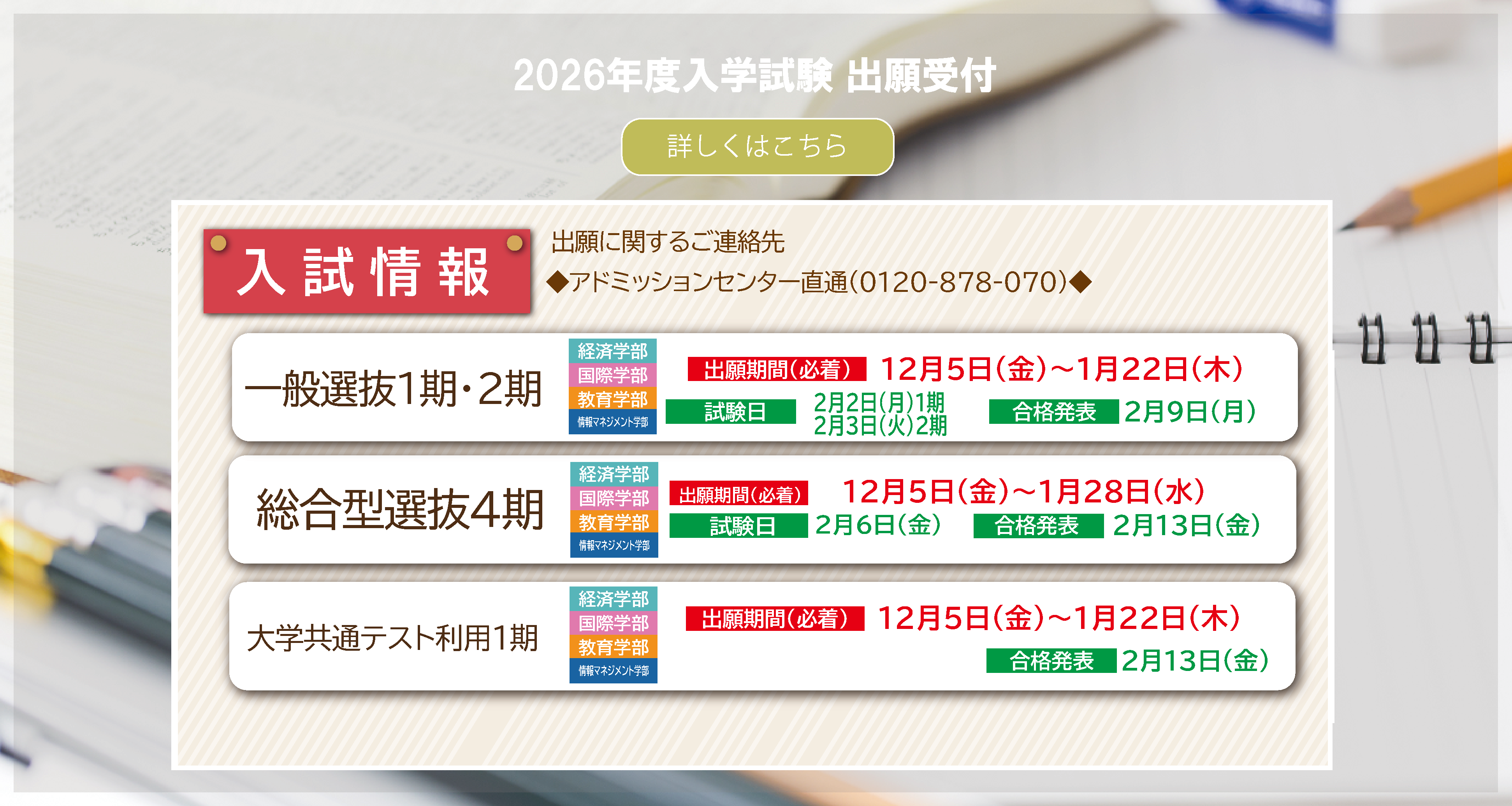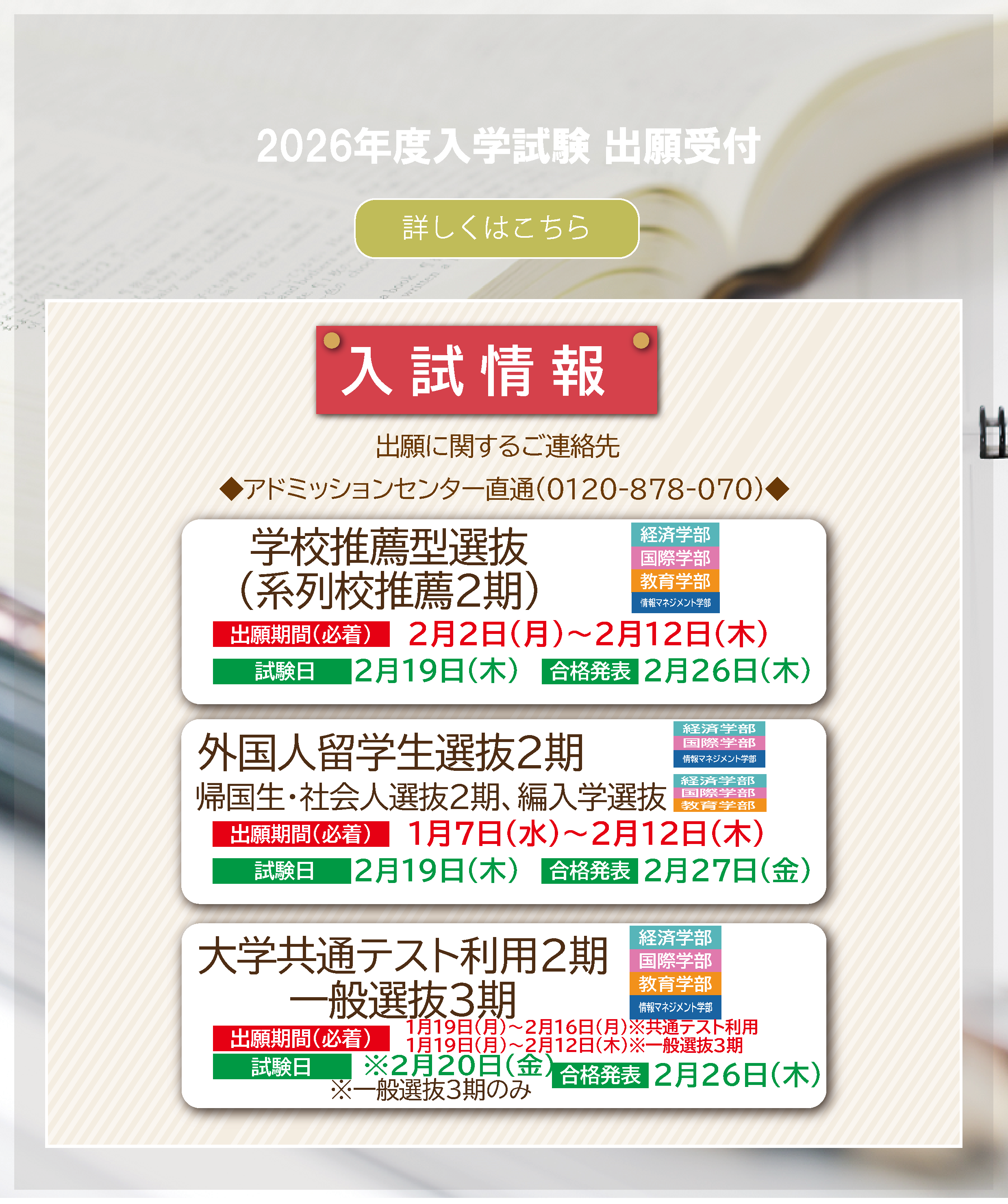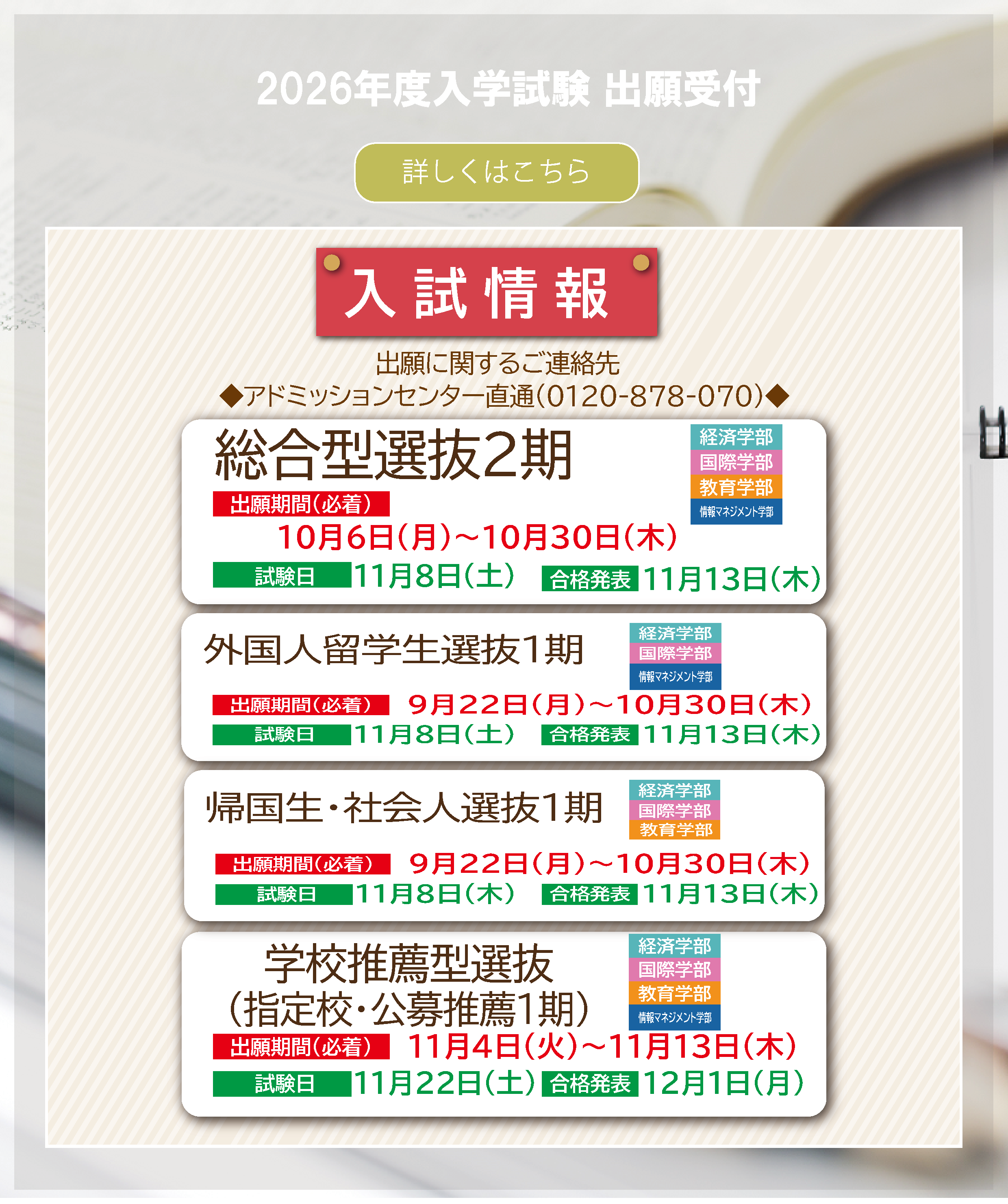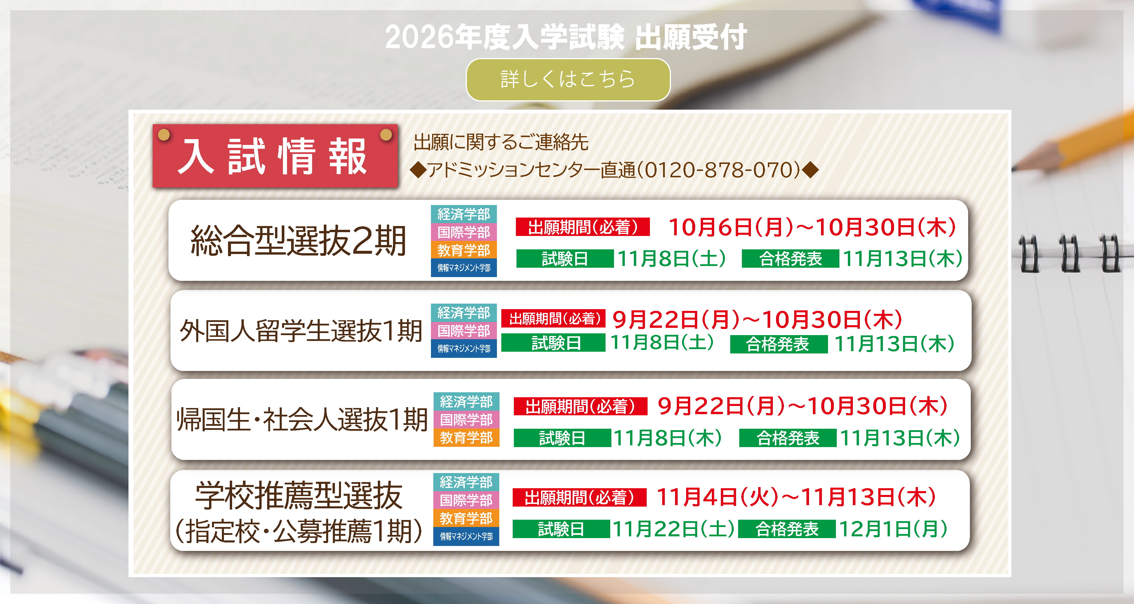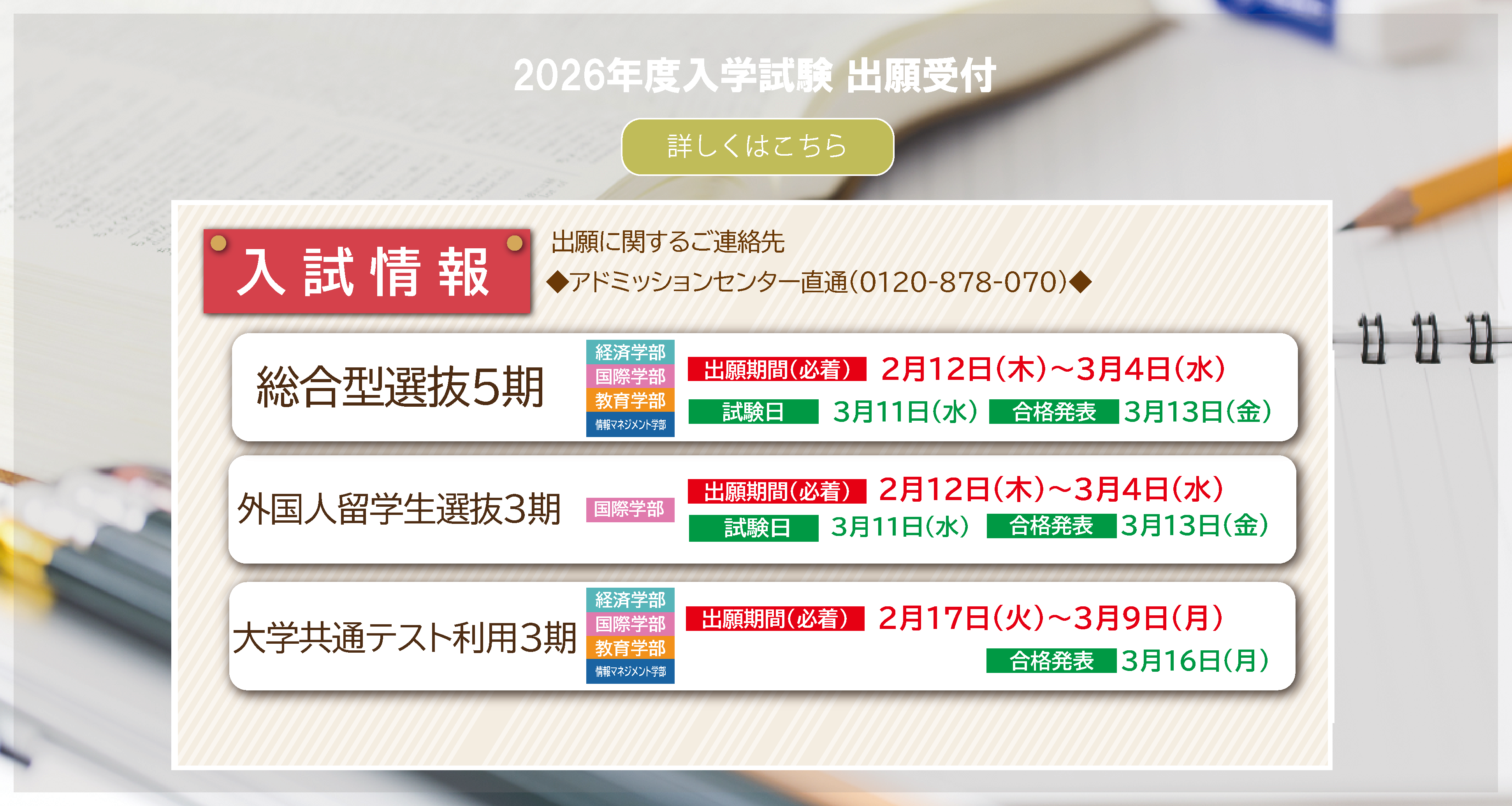 2026年度「特別選抜(留学生選抜・社会人・帰国生選抜・編入学)入学試験要項の公開について