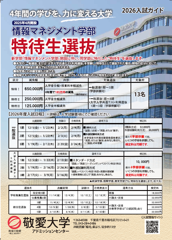 2025年4月に開設された「情報マネジメント学部」の誕生を記念し、同学部に特化した特待生選抜を実施します。