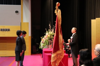 三幣利夫学長の式辞では、建学の精神「敬天愛人」が紹介され、教職員はこの精神を基本として学生の教育にあたることが述べられました。また、「どの大学で学ぶかではなく、何を学ぶか」が大事であることが語られました。