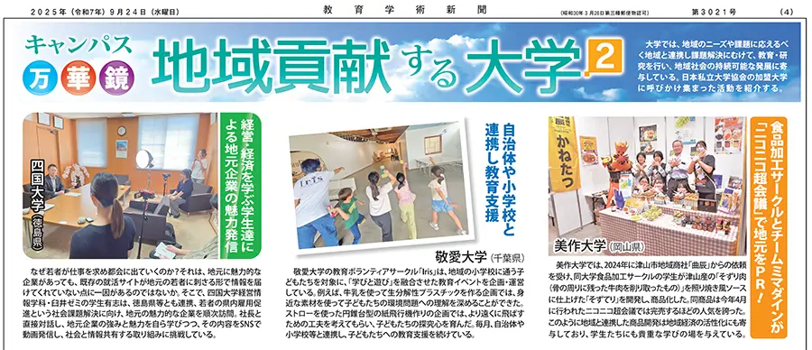 今回の紙面では、「地域のニーズや課題に応える大学」として、地域社会と協力し教育・研究活動を展開している大学の取り組みが特集されました。その一例として、「Iris」の活動が評価されました。