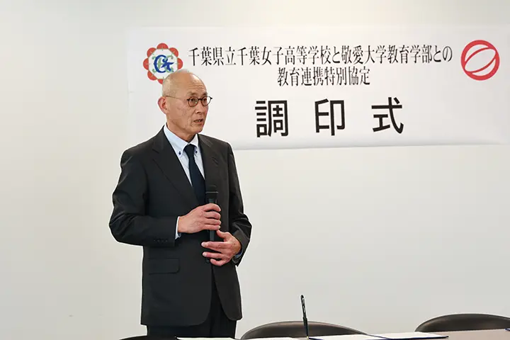中山学長は、2026年度が学園創立100周年、大学開学60周年という節目の年に地元の名門である千葉女子高校と提携できることを喜びつつ、「高校3年間と大学4年間の計7年間を通じた連携によって、教員養成の充実につなげていきたい」と今後の展望を述べました。