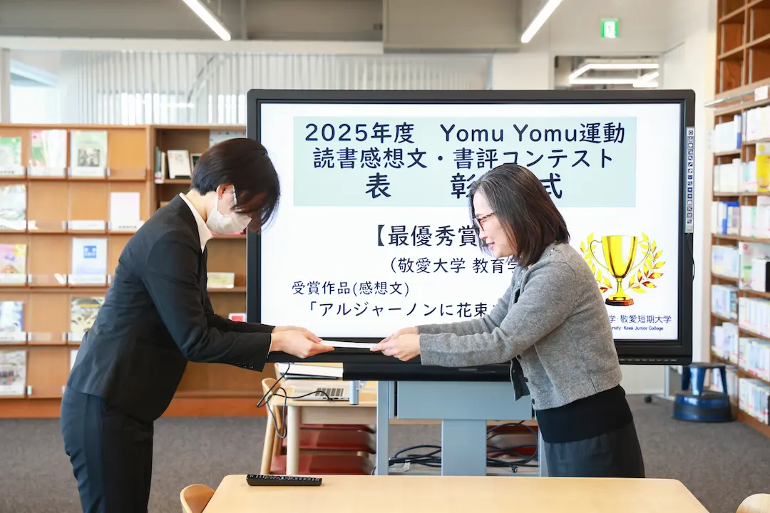メディアセンターが所蔵する図書から読みたい本を選び(リクエストも可能)、図書1冊につき1,200文字~1,800文字程度の感想文、または書評を投稿します。応募された作品の中から最優秀賞と優秀賞が選ばれ、賞状と副賞が送られるコンテストです。「YomuYomu運動」は、15年以上の間続けられている取り組みで、現在のコンテスト形式になってからは今回で4回目となります。