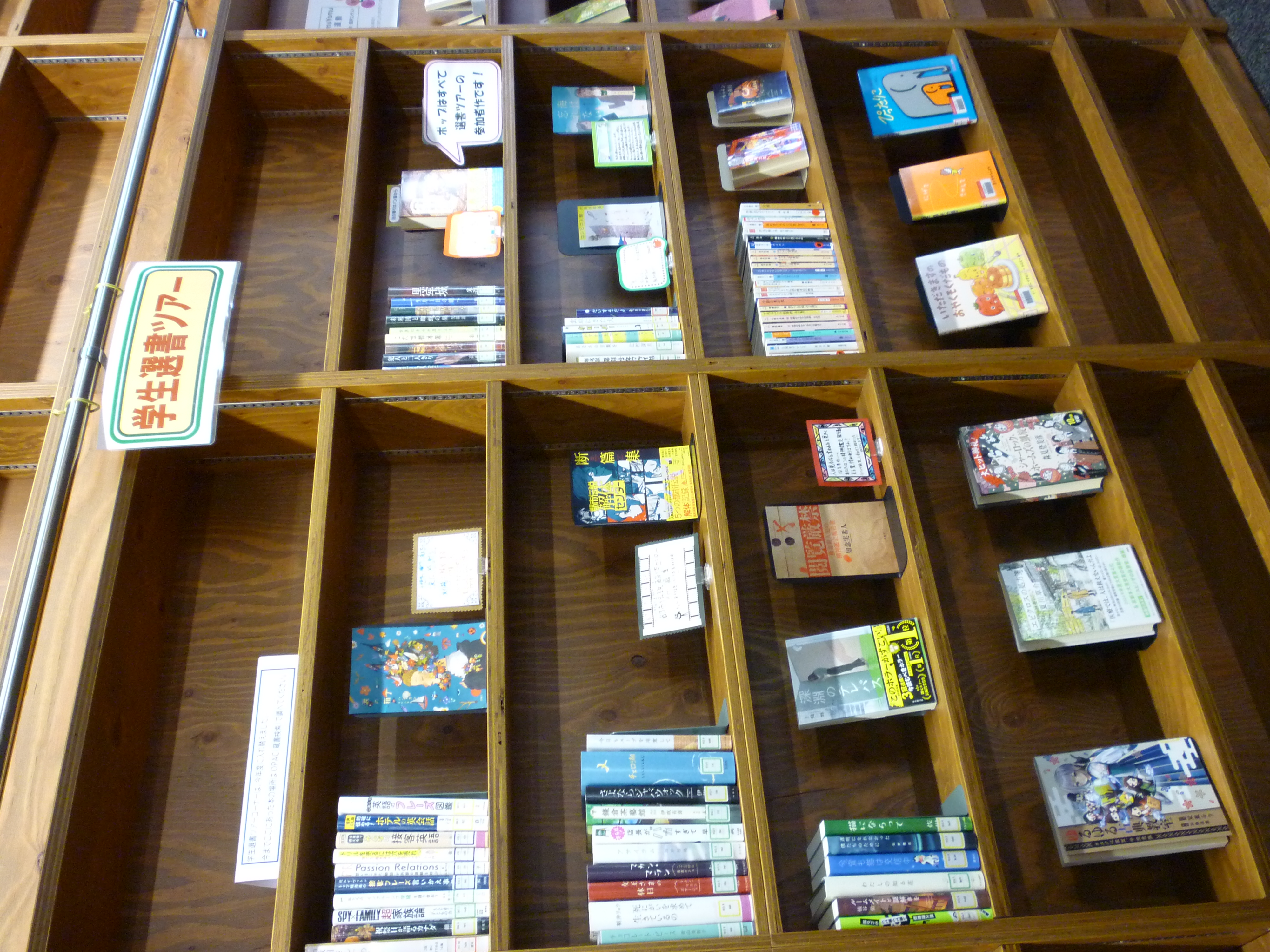 選ばれた本は、現在1号館2階メディアセンター内の「学生選書ツアーコーナー」に展示しています。