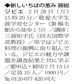 ホーム >  MEDIA NEWS >  【新聞掲載情報】生涯学習講座の紹介『新しいちばの恵み 房総ジビエ』